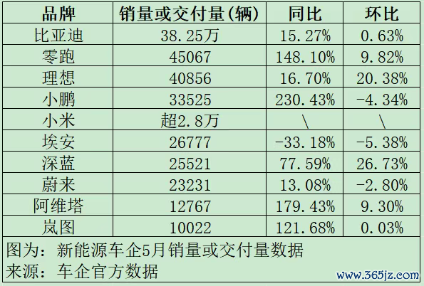 2025年前5个月,广汽埃安累计销量97288辆,同比去年100,637辆下降3.33%。